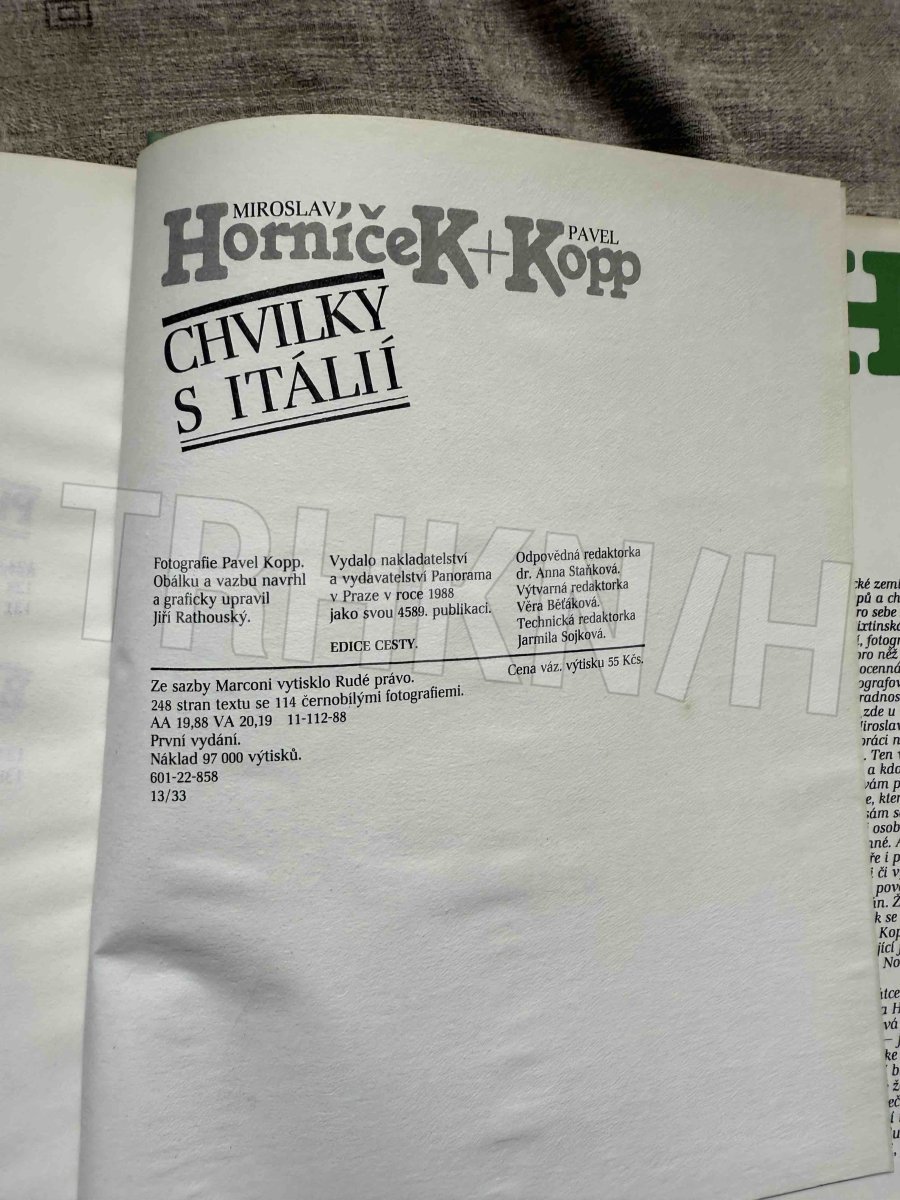 Chvilky s Itálií / Miroslav Horníček, Pavel Kopp - Panorama, Praha 1988, 1. vydání, stran: 248, černobílé fotografie, pevná vazba, včetně papírového přebalu