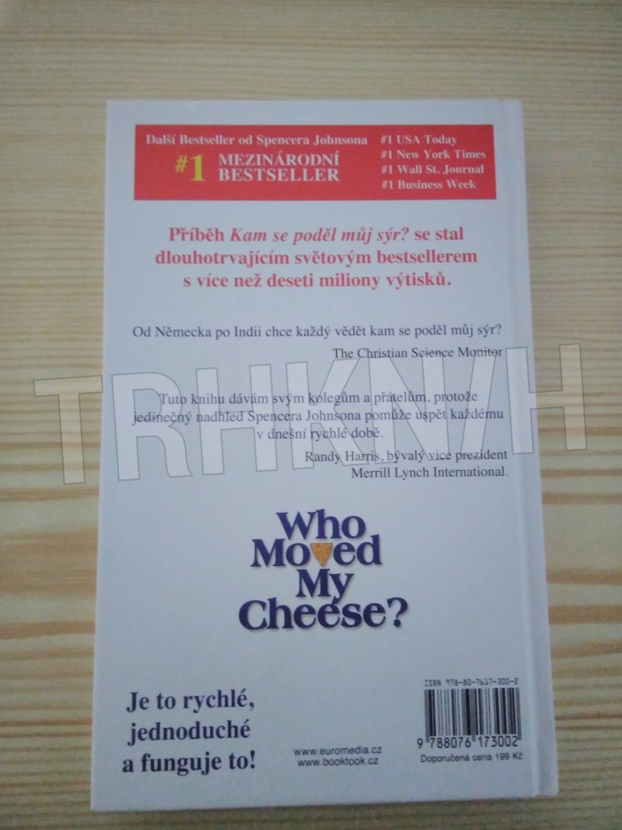 Podobenství přinášející poučení o tom, že změna je život a každý z nás by se měl naučit přijímat nejrůznější životní změny. Pro starší děti.Autor, specialista na manažerské metody, vypráví příběh myší a lidí, kteří hledají Sýr - symbol toho, co v životě chceme, po čem toužíme a o co usilujeme. Když ho hlavní hrdinové příběhu naleznou, jejich život ustrne v naučeném stereotypu. Každý den si jdou pro svůj Sýr. Jednoho dne se však Sýr ztratí a jeho hledači jsou nuceni se vyrovnat s touto změnou. A z jejich chyb a reakcí by se měl poučit také čtenář příběhu - tedy máme být připraveni na všechny životní změny, uvědomovat si jejich nezbytnost a přizpůsobovat se jim, nelpět na zažitých životních stereotypech, nebát se nových životních Sýrů/cílů. - Moudrost podaná prostřednictvím jednoduchého, naivního příběhu připomíná poučné příběhy o životní filozofii medvídka Pú. Upravená, bohatě ilustrovaná verze pro děti.