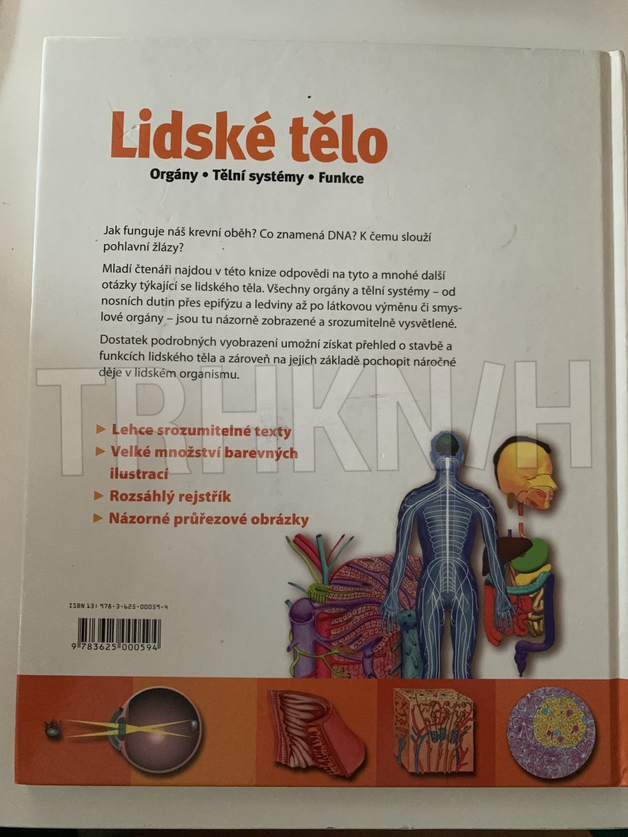 Jak funguje náš krevní oběh? CO znamená DNA? K čemu slouží pohlavní žlázy? Mladí čtenáři najdou v knize odpovědi na tyto a mnohé další otázky týkající se lidského těla. Všechny orgány a tělní systémy- od nosních dutin přes epifýzu a ledviny až po látkovou výměnu či smyslové orgány- jsou tu názorně zobrazené a srozumitelně vysvětlené. Dostatek podrobných vyobrazení umožní získat přehled o stavbě a funkcích lidského těla a zároveň na jejich základě pochopit náročné děje v lidském organismu.