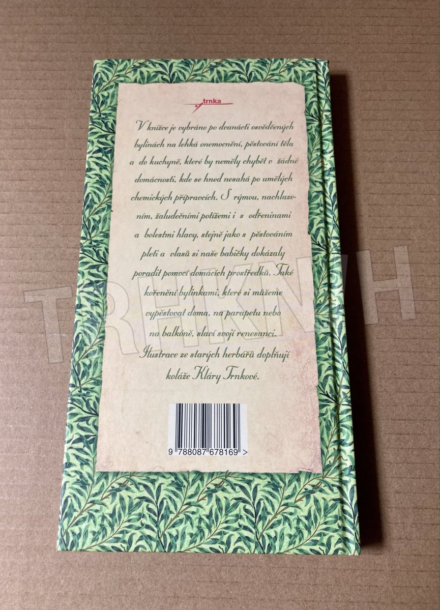 V knížce je vybráno po dvanácti osvědčených bylinách na lehká onemocnění, pěstování těla a do kuchyně, které by neměly chybět v žádné domácnosti, kde se hned nesahá po umělých chemických přípravcích. S rýmou, nachlazením, žaludečními potížemi i s odřeninami a bolestmi hlavy, stejně jako s pěstováním pleti a vlasů si naše babičky dokázaly poradit pomocí domácích prostředků. Také kořenění bylinkami, které si můžeme vypěstovat doma, na parapetu nebo na balkóně, slaví svojí renesanci. Ilustrace ze starých herbářů doplňují koláže Klára Trnkové.