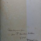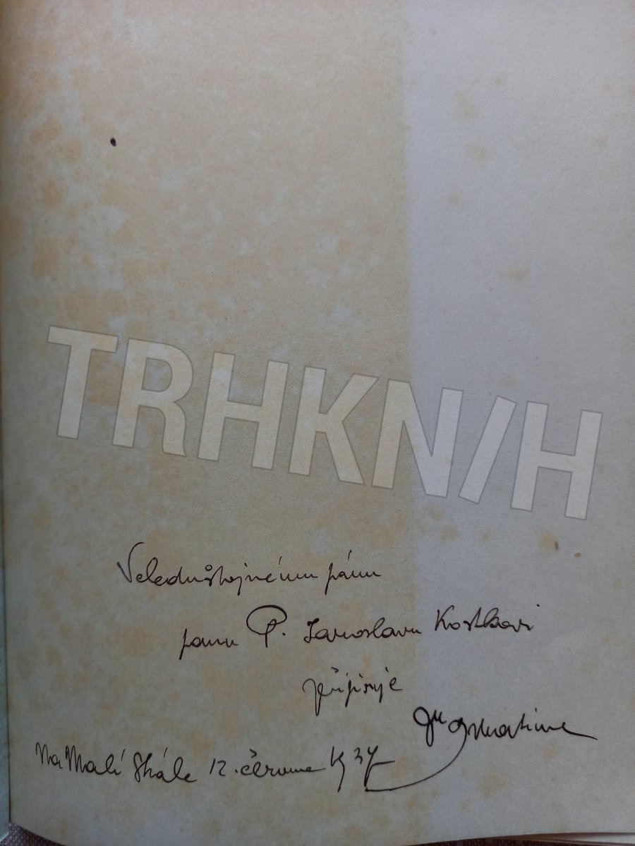 Knížka je v bezvadném stavu s věnováním autora, na hřbetu štítek s číslem, některé listy uvolněné, ale kompletní.