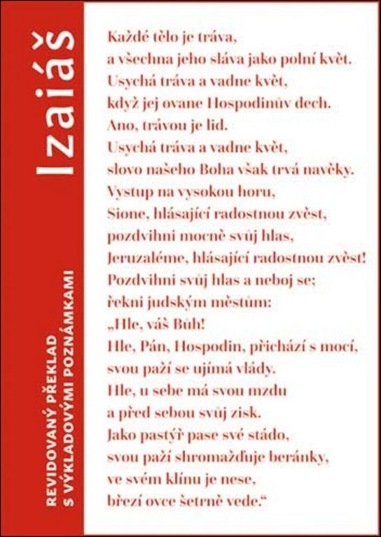 Překlad knihy Izaiáš s podrobným komentářem Josefa Hřebíka (s přispěním Jaroslava Brože a Pavla Jartyma) navazuje na knižně vydaný překlad Václava Bognera (1986), používaný v římskokatolické liturgii. Toto vydání Bognerovu práci reviduje a spolu s bohatými komentáři chce být studijní pomůckou vycházející z aktuálního stavu biblického bádání. Svým původem navazuje na projekt tzv. Českého katolického překladu, zahájeného vydáním podobně rozsáhle komentovaného Pentateuchu (2006), a měl by se postupně stát součástí revidovaného znění českého překladu Písma používaného v římskokatolických liturgických knihách.