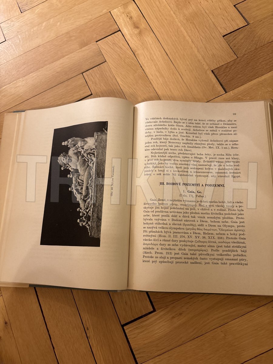 Autoři se zabývají popisem jednotlivých řeckých a římských bohů a bůžků a řeckých heroů. Vše je doplněno černobílými fotografiemi soch a reliéfů znázorňující antické bohy.