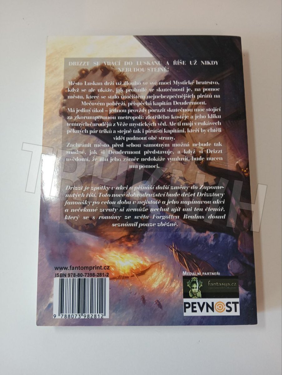 Drizzt se vrací do Luskanu a Říše už nikdy nebudou stejné! Město Luskan drží už dlouho ve své moci Mystické bratrstvo, když se ale ukáže, jak prohnilé ve skutečnosti je, na pomoc městu, které se stalo útočištěm nejnebezpečnějších pirátů na Mečovém pobřeží, přispěchá kapitán Deudermont. Má jediný úkol – jednou provždy porazit skutečnou moc stojící za zkorumpovanou metropolí: zlotřilého kostěje a jeho kliku temných čarodějů z Věže mystických věd. Ale ti mají v rukávech pěkných pár triků a stejně tak i pirátští kapitáni, kteří by chtěli vidět padnout obě strany. Zachránit město před sebou samotným možná nebude tak snadné, jak si Deudermont představuje, a když si Drizzt uvědomí, že mu jeho záměr nedokáže vymluvit, bude nucen mu pomoci.