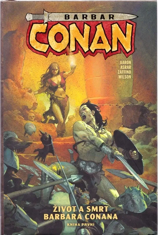 Z věku nepředstavitelných divů přichází... Conan, černovlasý Cimeřan, podmračený, s mečem v ruce. Zloděj, drancíř a zabiják, jenž poznal hluboký zármutek i bezuzdné veselí a který neváhal svýma bosýma nohama v prostých sandálech rozdrtit i ty nejmocnější trůny světa. Kromě žejdlíku chutného piva, žáru bitvy či lesku zlatých pokladů uchvátily Conana nejednou také krásné ženy. A právě této slabosti využila podlá Karmínová čarodějka – jež se kvůli dosažení svého cíle nezdráhá ničeho! Šelmy minulosti vystrkují ostré tesáky a barbar stane tváří v tvář nezvratnému osudu – avšak co bude následovat? Co když na něj čeká sám... Crom?! Bohovi je však osud lidí dočista ukradený – leda by ho někdo přinutil, aby změnil názor. Připravte se na osudovou bitvu, která nemá obdoby!