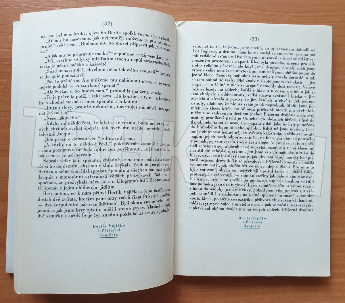 Vyřazená z knihovny, zabalená v plastovém obalu, na předsádce a prvních několika stranách razítko knihovny, flekatá ořízka, uvnitř trochu zažloutlá, ale jinak čistá a v pořádku.