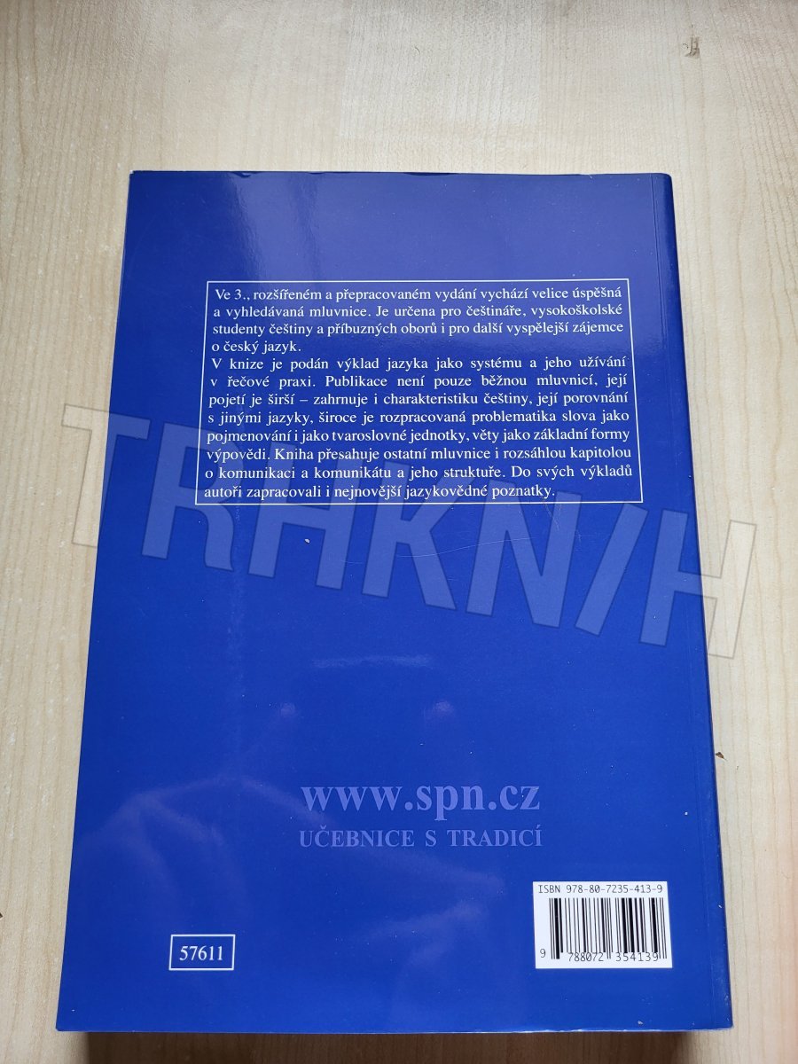 Úspěšná a vyhledávaná mluvnice vychází v rozšířeném a upraveném vydání. Je určena pro češtináře, vysokoškolské studenty češtiny a příbuzných oborů i pro další vyspělejší zájemce o český jazyk. V knize je podán výklad jazyka jako systému a jeho užívání v řečové praxi. Publikace není pouze běžnou mluvnicí, její pojetí je širší - zahrnuje i charakteristiku češtiny, její porovnání s jinými jazyky, široce je rozpracovaná problematika slova jako pojmenování i jako tvaroslovné jednotky, věty jako základní formy výpovědi. Kniha přesahuje ostaní mluvnice i rozsáhlou kapitolou o komunikaci a komunikátu a je jeho struktuře. Do svých výkladů autoři zapracovali i nejnovější jazykovědné poznatky.