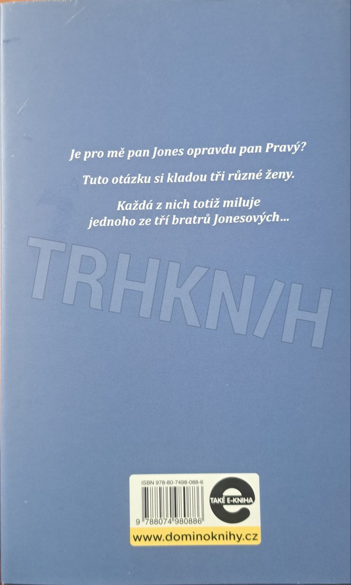 Je pro mě pan Jones opravdu pan Pravý? Tuto otázku si kladou tři různé ženy. Každá z nich totiž miluje jednoho ze tří bratrů Jonesových… Izzy je rozhodnuta udělat za dosavadním nevydařeným životem tlustou čáru a začít znovu. Ovšem s Charliem Jonesem to nebude snadné, protože je sice okouzlující, ale také nepříliš spolehlivý. A flirt je jeho druhá přirozenost. Alicia je už roky šťastně provdaná za oddaného Hugha. V koutku duše ale ví, že jí chybí alespoň špetka nevázanosti, spontánnosti, zkrátka prosté radosti. A pak jí to dojde – nejspíše nastal čas, aby si to všechno začala dopřávat. Emmin vztah s Davidem byl dříve plný radosti a romantiky, jenže to už teď neplatí. Od doby, kdy se neúspěšně pokoušejí o dítě, to jde s jejich vztahem z kopce. A právě tehdy vstoupí do Emmina života pokušení.