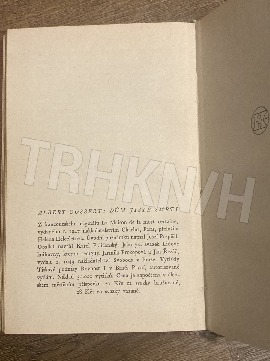 Albert Cossery ; z franc. orig. La Maison de la mort certaine ... přeložila Helena Helceletová ; úvodní poznámku napsal Josef Pospíšil