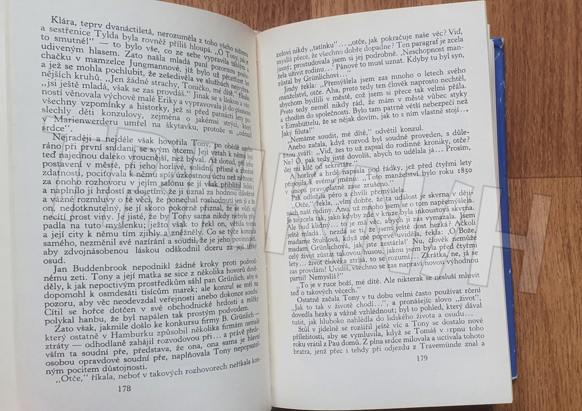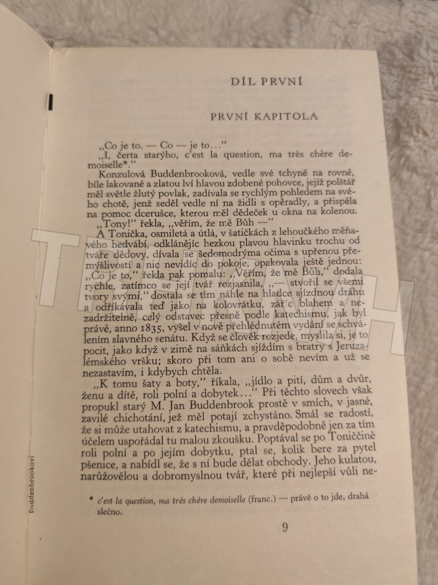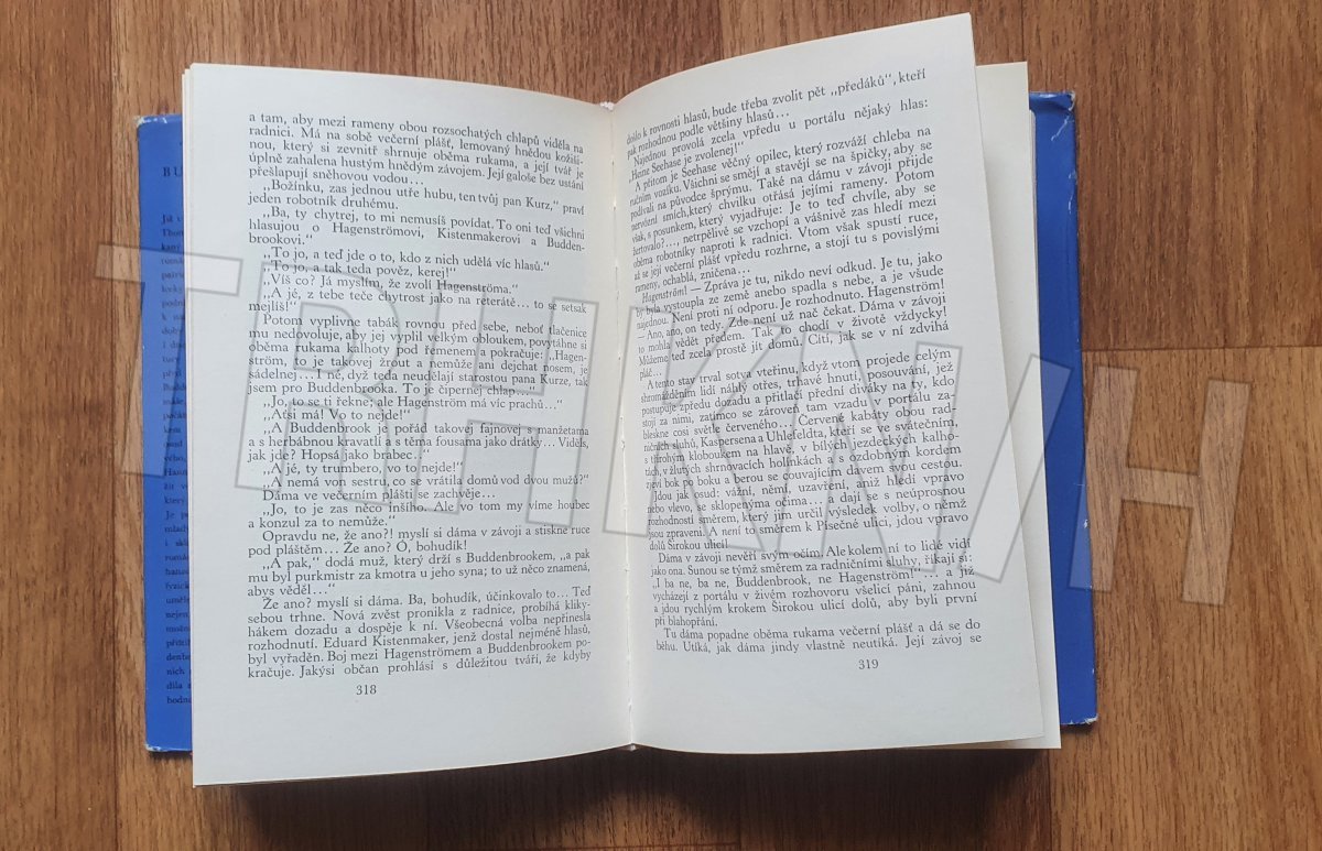 První román šestadvacetiletého T. Manna je moderní rodová sága, vyprávějící o úpadku lübecké patricijské rodiny v průběhu tří generací. Jestliže Jan Buddenbrook představuje ještě harmonického, vyváženého člověka z "gründerského" zlatého věku měšťanstva, za jehož vedení obchodní podnik vzkvétá, syn Tomáš, jediný schopný ze tří sourozenců, již podnikatelsky živoří, přičemž s příchodem jeho hudbymilovné ženy přichází do rodiny cizokrajný element, a jejich syn Hanno, žijící již cele pro hudbu, je již pro praktický život neschopný a jeho smrtí rod vymírá : "měšťácké se rozpouští v hudebním". Román, který založil autorovu světovou slávu, patří mezi trvalé hodnoty světové literatury.