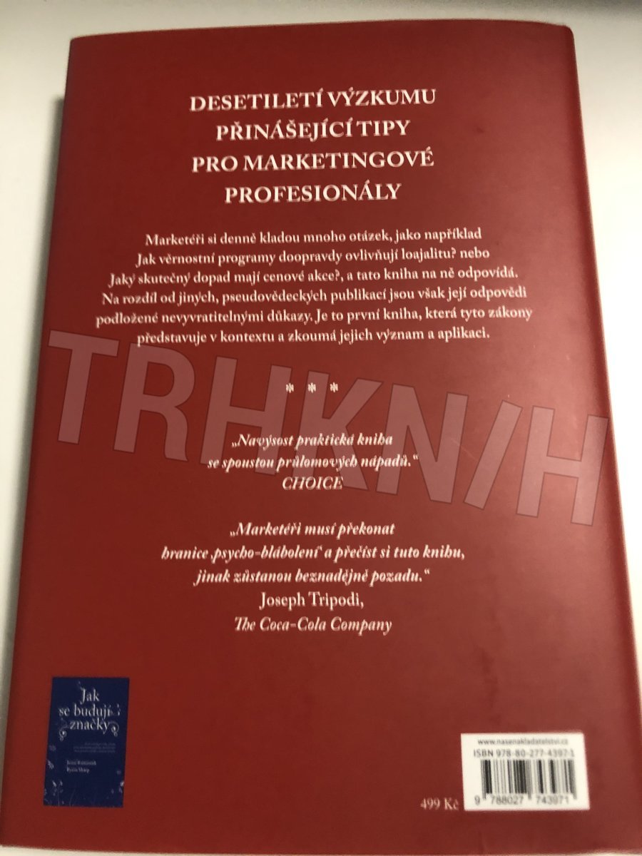 Co obchodníci nevědí. Tato kniha přináší odpovědi na klíčové otázky, které pracovníci marketingu řeší každý den. Otázky typu: jak podpořit růst a stabilitu značky, jak funguje reklama, jakou částku je potřeba vložit do propagace, vyplatí se věrnostní programy, jsou zákazníci loajální Kniha přináší výsledky desítky let trvajících výzkumů srozumitelnou formou pro všechny obchodníky. Je to první kniha svého druhu, která prezentuje zákonitosti obchodu a propagace. Nejvýraznějším kladem této knihy je, že pravidla a zákonitosti v ní fungují v různé době i v různých částech světa.