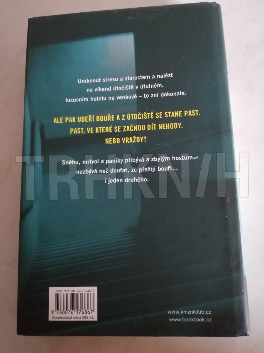 Do odlehlého venkovského hotelu přijíždí na zimní víkend několik hostů: Gwen a její kamarádka Riley, páry Ian a Lauren, Matthew a Dana, Beverly a Henry, proslulý obhájce David a staropanenská spisovatelka Candice. Poté co dorazí, udeří sněhová bouře, která odstřihne hotel od elektřiny i veškerého kontaktu s vnějším světem. A hned první noc dojde k tragické nehodě: Dana spadne ze schodů a zabije se. Byl to ale nezaviněný pád? Atmosféra houstne, baterie mobilů se pomalu vybíjejí a nedůvěra mezi hosty přechází v paranoiu – další smrt na sebe totiž nenechá dlouho čekat, a tentokrát už je to nepochybně vražda... Inspirace klasickými detektivkami, plíživé sílící napětí a hororové vyústění – Shari Lapena ani tentokrát neušetří čtenáře šokujícího odhalení, stejně nečekaného, jaký přinesly závěrečné zvraty v jejích předchozích psychothrillerech Manželé odvedle a Někdo cizí v domě