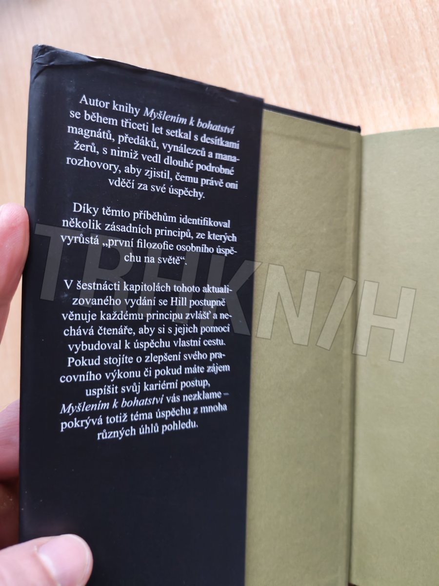 Autor knihy Myšlením k bohatství se během třiceti let setkal s desítkami magnátů, předáků, vynálezců a manažerů, s nimiž vedl dlouhé podrobné rozhovory, aby zjistil, čemu právě oni vděčí za své úspěchy. Díky těmto příběhům byl schopen identifikovat několik zásadních principů, ze kterých vyrůstá „první filozofie osobního úspěchu na světě“. V šestnácti kapitolách tohoto aktualizovaného vydání se Hill postupně věnuje každému principu zvlášť a nechává čtenáři, aby s jejich pomocí vybudoval vlastní cestu k úspěchu. Pokud stojíte o zlepšení svého pracovního výkonu či pokud máte zájem uspíšit svůj kariérní postup, Myšlením k bohatství vás nezklame – pokrývá totiž téma úspěchu z mnoha různých úhlů pohledu.