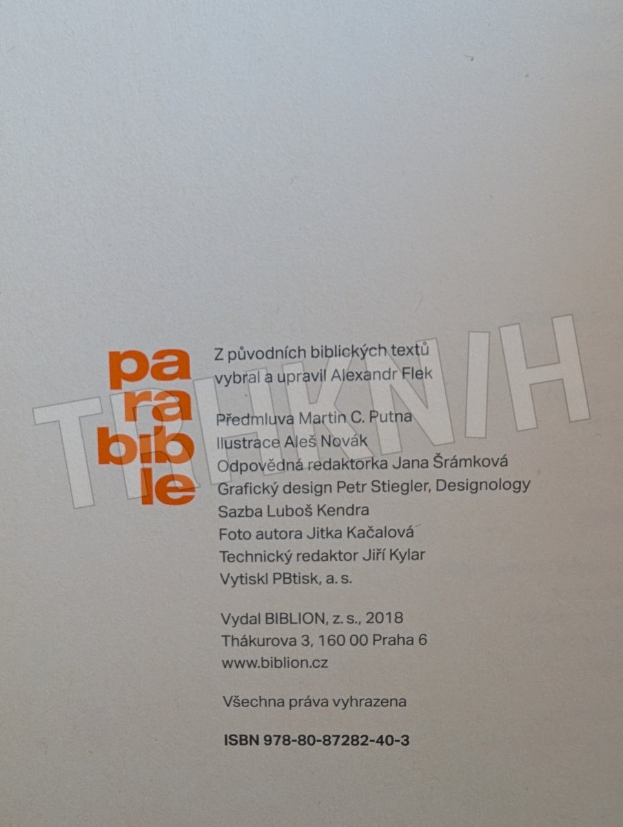 Tisková zpráva o našem prezidentovi Ježíši z Nošovic je aktuální, místy až provokativní biblickou parafrází. Dávný příběh o Ježíši Nazaretském zasazuje do kulis současného Česka, především ale staví dnešního čtenáře před nově obnažené pointy dávných evangelijních příběhů a výroků. Jak v předmluvě uvádí prof. Martin C. Putna, v Parabibli jde o rozlousknutí jádra biblických textů ze slupky jejich dobového kontextu a o jejich nové „zabalení“ do současné literární formy. Evangelický teolog Alexandr Flek je známý jako překladatel Bible21, bestselleru roku 2009. Tentokrát ale namísto snahy o maximální přesnost překladu volí jiný přístup: aktualizované převyprávění. Reflektuje tak původní záměr biblického textu: vyprovokovat čtenáře k reakci, překvapit, konfrontovat, rozesmát nebo rozčílit. Parabible je tedy dílčí, zaujatou, subjektivní, ale vážně míněnou odpovědí na otázku: Jak by mohl vypadat Ježíšův příběh, kdyby se odehrál dnes.