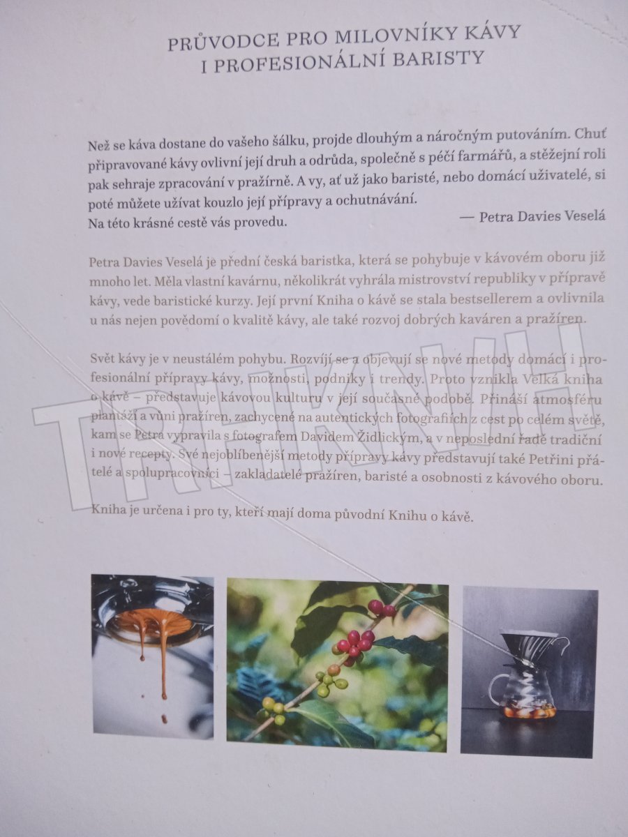 Kniha je určena i těm, kteří svou první Knihu o kávě mají – obsahuje zcela nové fotografie a mnoho nových informací včetně nových receptů kávových nápojů. Nádherné nové fotografie vtáhnou čtenáře do děje. Zavedou je přímo na kávové plantáže, do pražíren či k zajímavým osobnostem z oboru. Kniha seznamuje s řadou nových metod přípravy kávy a receptur, s domácími i profesionálními mlýnky a kávovary a další vybavením. Také v ní najdete i praktické rady jak založit a úspěšně provozovat vlastní podnik.