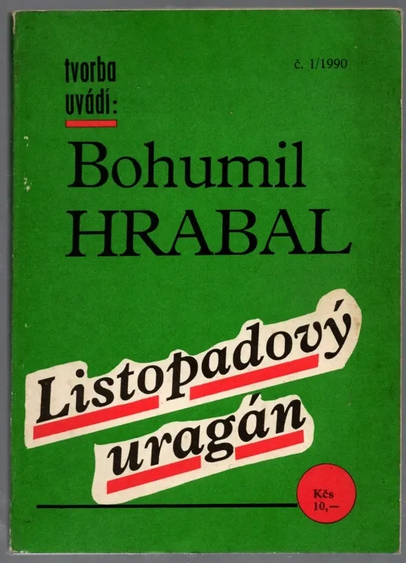 Listopadový uragán Autor: Hrabal, Bohumil Vydání: 1 Místo vydání: Praha Počet stran: 141 s. Rok vydání: 1990 Vazba: brožovaná Stav: dobrý, flekaté desky a prvních několik stran Nakladatel: Tvorba ve vydavatelství Delta Kategorie: Beletrie Edice, série: k