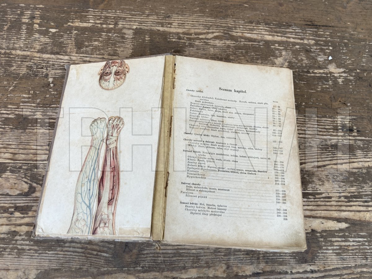 1923 Stav: Mírně opotřebená, chybí titulní list a stránky s vysvětlivkami k anatomickému modelu, anatomický model nekompletní