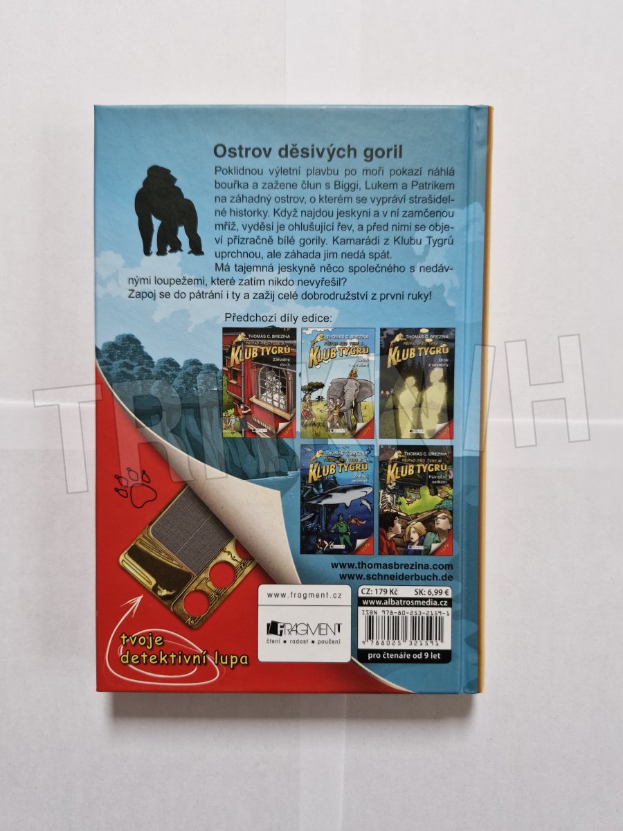 Poklidnou výletní plavbu po moři pokazí náhlá bouřka a zažene člun s Biggi, Lukem a Patrikem na záhadný ostrov, o kterém se vypráví strašidelné historky. Když najdou jeskyni a v ní zamčenou mříž, vyděsí je ohlušující řev, a před nimi se objeví přízračně bílé gorily. Kamarádi z Klubu Tygrů uprchnou, ale záhada jim nedá spát. Má tajemná jeskyně něco společného s nedávnými loupežemi, které zatím nikdo nevyřešil? Zapoj se do pátrání i ty a zažij celé dobrodružství z první ruky!