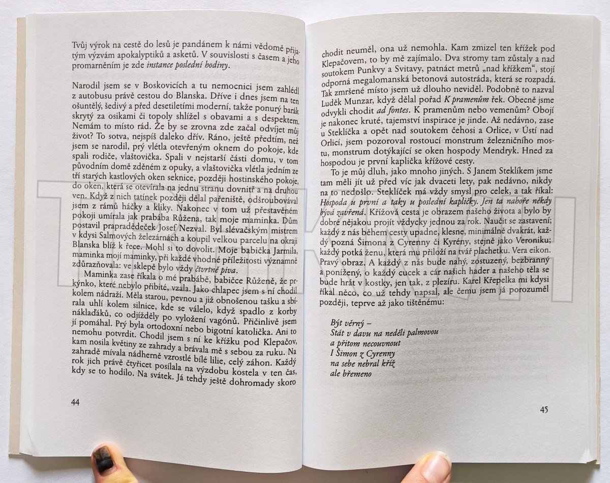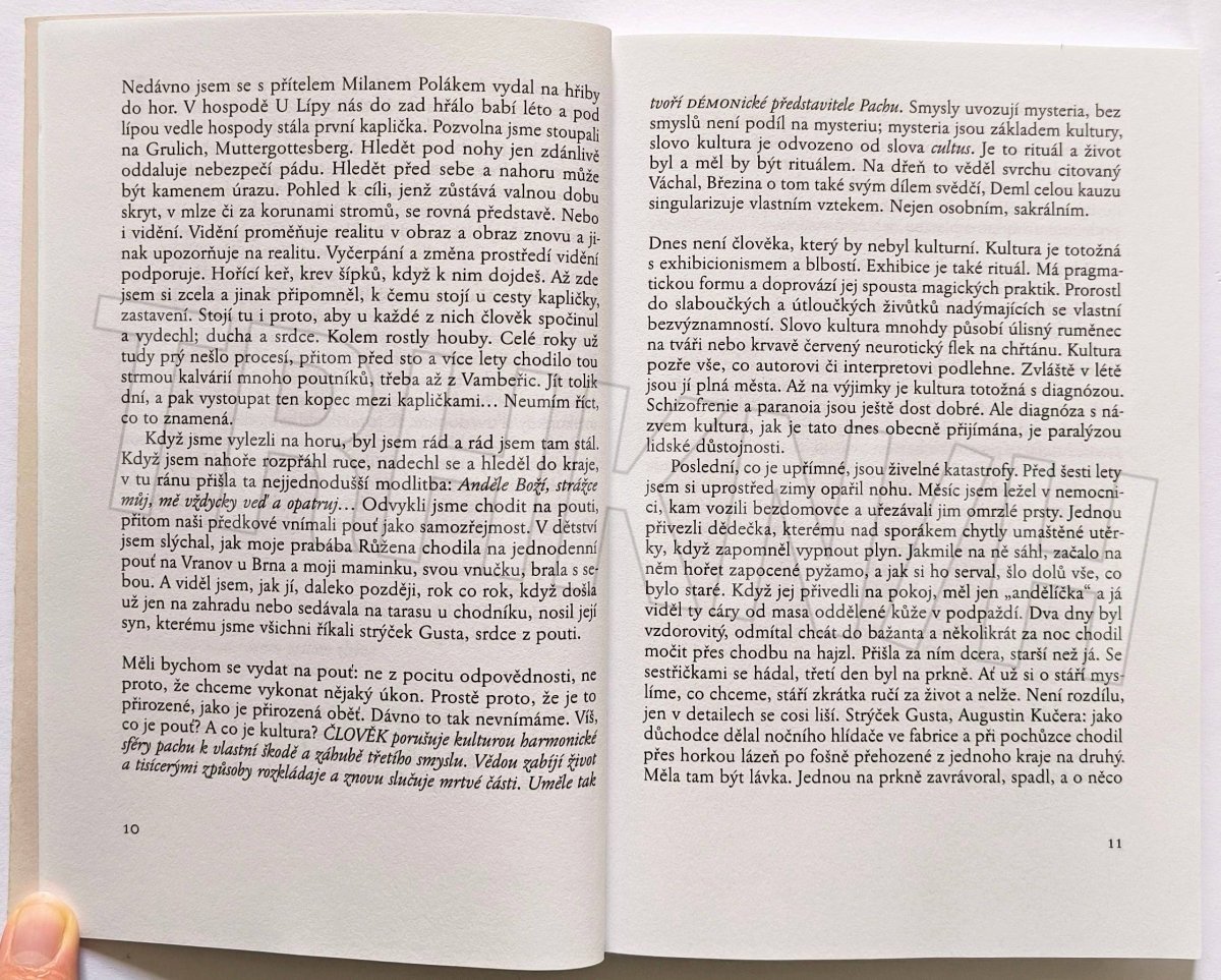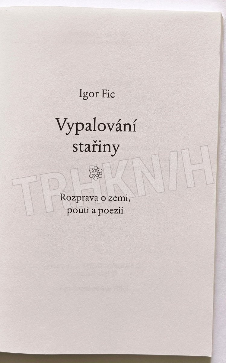 „Pouť začíná vždy ještě dřív, než na ni člověk pomyslí,“ píše Igor Fic v knize Vypalování stařiny, v níž se záznamy z pěší pouti z Hostýna do Svaté Hory u Příbrami prolínají s úvahami o poezii a hledáním rodových kořenů coby viditelných i skrytých kořenů vlastní existence. Podtitul knihy Igora Fice (*1967), uznávaného literárního kritika a pedagoga, zní Rozprava o zemi, pouti a poezii. Všechna tři témata autor pojednal s vážností a vášnivou opravdovostí, zároveň však kniha nepostrádá nadhled a je napsána velmi čtivě - svá rozjímání o světě, o lidech, víře i literatuře Fic staví především na hlubokém prožitku.