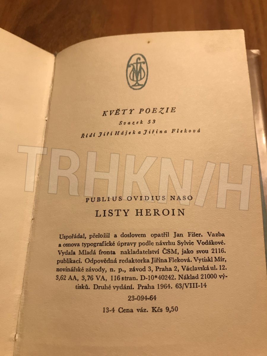 Listy heroin Autor: Ovidius Vydání: 1 Místo vydání: Praha Počet stran: 81 s. Rok vydání: 1960 Vazba: vázaná Stav: dobrý, lehce odřené zašpiněné desky Nakladatel: Mladá fronta Kategorie: Poezie Edice, série: kniha Vytvořeno: 2017-09-28 10:13:37 Naposledy