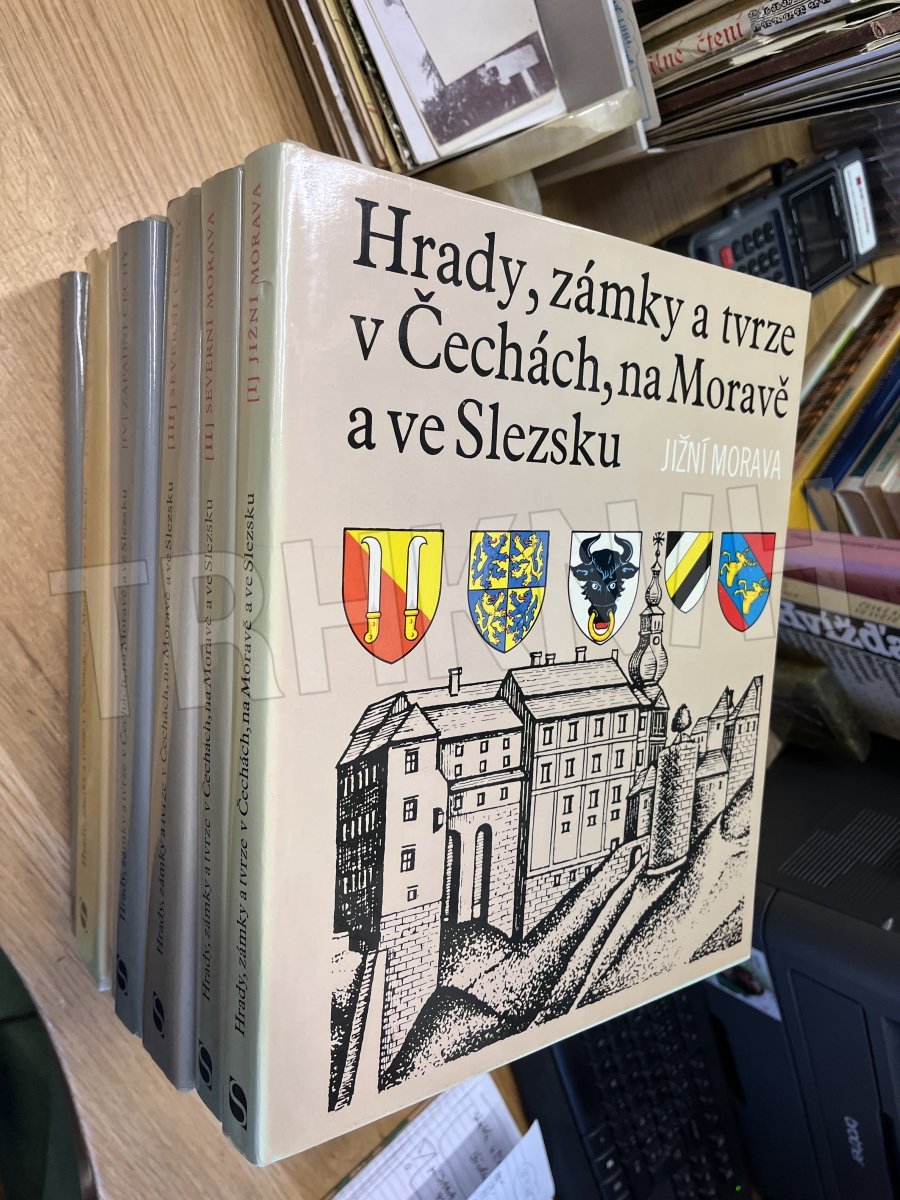 Hrady, zámky a tvrze v Čechách, na Moravě a ve Slezsku orig. celoplátěné vazby s přebaly, nepatrné oděrky. Knihy obsahují četné čb i barevné fotografie a ilustrace, erby: J. L