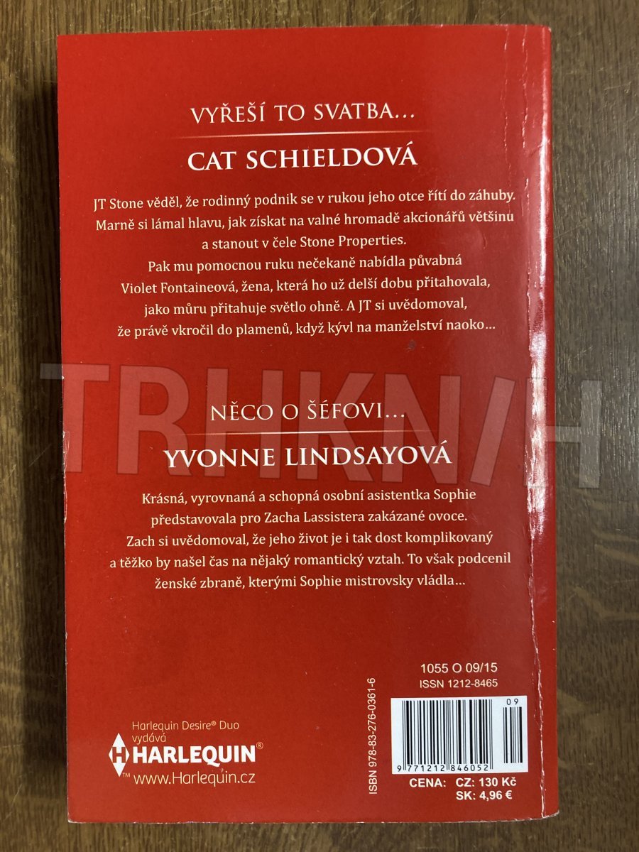 JT Stone věděl, že rodinný podnik se v rukou jeho otce řítí do záhuby. Marně si lámal hlavu, jak získat na valné hromadě akcionářů většinu a stanout v čele Stone Properties. Pak mu pomocnou ruku nečekaně nabídla půvabná Violet Fontaineová, žena, která ho už delší dobu přitahovala, jako můru přitahuje světlo ohně. A JT si uvědomoval, že právě vkročil do plamenů, když kývl na manželství naoko… NĚCO O ŠÉFOVI... (série Klub džentlmenů: Ztracený magnát 4) - Yvonne Lindsayová Krásná, vyrovnaná a schopná osobní asistentka Sophie představovala pro Zacha Lassistera zakázané ovoce. Zach si uvědomoval, že jeho život je i tak dost komplikovaný a těžko by našel čas na nějaký romantický vztah. To však podcenil ženské zbraně, kterými Sophie mistrovsky vládla…
