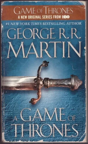 A song of Ice and Fire: Book 1., in English, fantasy, paperback, book cover in worse condition, back torn, entire book has dog-earns, book block still in good condition, 808 pages (with appendix around 850)