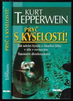 Kurt Tepperwein, známý německý terapeut a léčitel, ve své knize Pryč s kyselostí vysvětluje, proč je překyselení těla tolik nebezpečné a co udělat pro to, abychom znovu obnovili rovnováhu mezi kyselými a zásaditými látkami v těle. Naše tělo je uzpůsobeno tak, že bychom se mohli dožít až 130 let. Ovšem v důsledku svého životního stylu předčasně stárneme a umíráme. Vnitřní prostředí organismu by mělo mít mírně zásaditý charakter. Chybné návyky ve stravování však vedou k tomu, že se podíl zásaditosti v našem těle stále snižuje. Překyselení organismu je pak důvodem většiny nemocí. Kurt Tepperwein, který se již desítky let zabývá příčinami onemocnění, ve své knize vysvětluje, proč je překyselení těla tolik nebezpečné a co můžeme udělat pro to, abychom opět dosáhli rovnováhy ve vztahu kyselost - zásaditost. Nabádá čtenáře, aby se naučili sami určovat objem kyselosti. Vedle množství informací o zdravém způsobu výživy a života uvádí přehledný seznam zásaditých produktů. Popis Prof. Kurt Tepperwein, narozený v roce 1932 v Lobensteinu, byl úspěšným podnikatelem a poradcem, než se v roce 1973 stáhl z obchodního života. Stal se léčitelem a začal se zabývat výzkumem skutečných příčin nemocí a bolestí. Od roku 1984 řídí Internationale Akademie für geistige Wissenschaften. Jeho technika procvičování mentálního rozvoje a intuice je v dnešní době nedílnou součástí života mnoha lidí. K. Tepperwein, jehož knihy jsou překládány do mnoha jazyků, byl za své životní dílo vyznamenán v roce 1997 cenou Ersten deutschen Esoterikpreis.