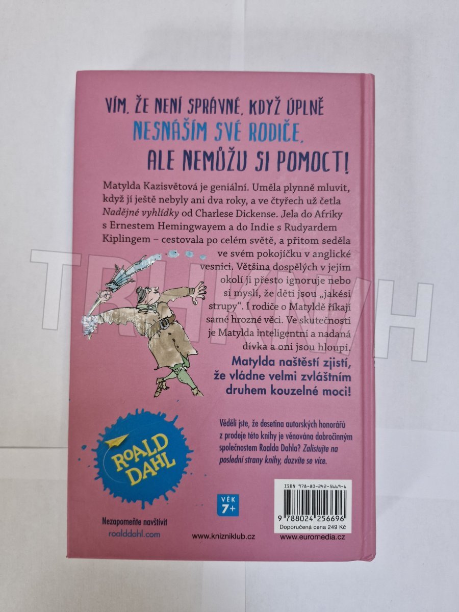 Matylda Kazisvětová je geniální. Uměla plynně mluvit, když jí ještě nebyly ani dva roky, a ve čtyřech už četla Nadějné vyhlídky od Charlese Dickense. Jela do Afriky s Ernestem Hemingwayem a do Indie s Rudyardem Kiplingem – cestovala po celém světě, a přitom seděla ve svém pokojíčku v anglické vesnici. Většina dospělých v jejím okolí ji přesto ignoruje nebo si myslí, že děti jsou „jakési strupy“. I rodiče o Matyldě říkají samé hrozné věci. Ve skutečnosti je Matylda inteligentní a nadaná dívka a oni jsou hloupí. Matylda naštěstí zjistí, že vládne velmi zvláštním druhem kouzelné moci!