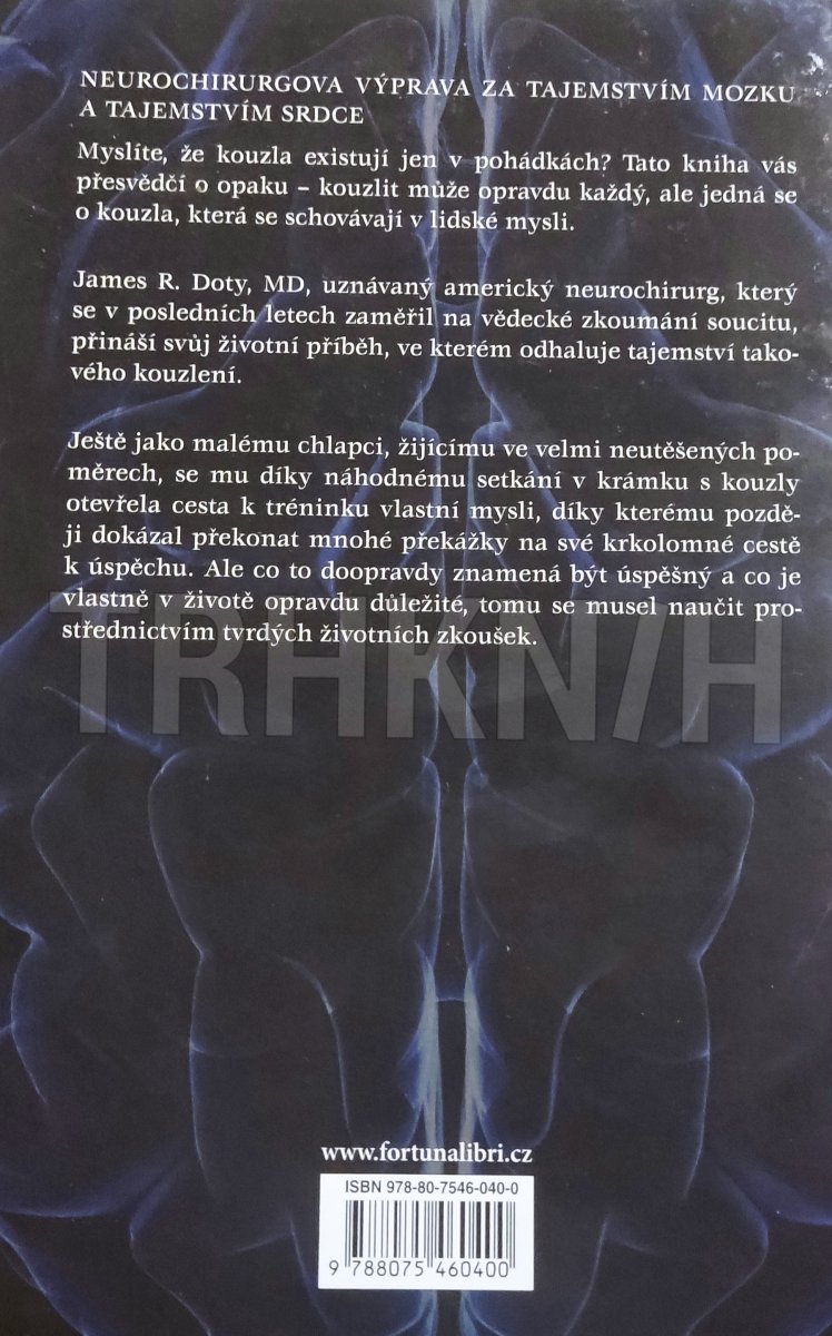 NEUROCHIRURGOVA VÝPRAVA ZA TAJEMSTVÍM MOZKU A TAJEMSTVÍM SRDCE. Myslíte, že kouzla existují jen v pohádkách? Tato kniha vás přesvědčí o opaku – kouzlit může opravdu každý, ale jedná se o kouzla, která se schovávají v lidské mysli. James R. Doty, MD, uznávaný americký neurochirurg, který se v posledních letech zaměřil na vědecké zkoumání soucitu, přináší svůj životní příběh, ve kterém odhaluje tajemství takového kouzlení. Ještě jako malému chlapci, žijícímu ve velmi neutěšených poměrech, se mu díky náhodnému setkání v krámku s kouzly otevřela cesta k tréninku vlastní mysli, díky kterému později dokázal překonat mnohé překážky na své krkolomné cestě k úspěchu. Ale co to doopravdy znamená být úspěšný a co je vlastně v životě opravdu důležité, tomu se musel naučit prostřednictvím tvrdých...