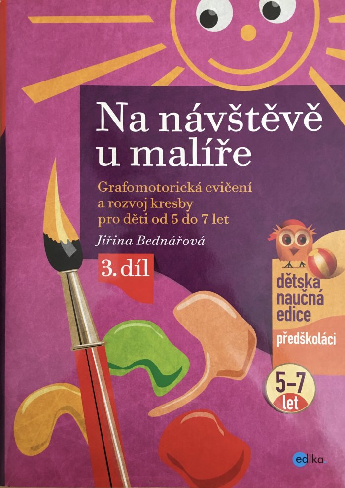 Publikace Na návštěvě u malíře obsahuje: 1) grafomotorická cvičení pro děti ve věku od 5 do7 let, pomocí kterých se rozvine: - jemná motorika a psychické funkce potřebné při kreslení a psaní - grafomotorické dovednosti a kresba dítěte - souhra ruky a oka, vnímání prostoru v souvislosti se směrem vedení čáry, 2) metodický návod pro dospělé, který: - upozorňuje na možná úskalí při nácviku jednotlivých prvků - pomáhá překonávat obtíže. V nové publikaci Jiřiny Bednářové, která je volným pokračováním dvou předchozích, Mezi námi pastelkami a Co si tužky povídaly. Nyní se s grafomotorickými cvičeními obrací k předškolákům a začínajícím školákům, 5 až 7-letým dětem a jejich dospělým kamarádům. V autorčině dopise na konci knihy se dozvíme, jak máme při práci s pracovními listy správně postupovat, aby se dostavil dobrý výsledek, a také dostaneme odpověď na otázky, které nás dospělé zajímají ohledně kreslení – psaní dětí tohoto věku.