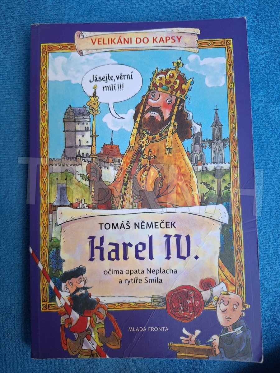 Že byl Karel IV. velký panovník a nechal postavit kamenný most v Praze, ví každé nemluvně. Ale tohle víte??? • V mládí byl pěkné kvítko – rád chodil v přestrojení, vyhledával dobrodružství a nikdy se nenechal zajmout – to raději utekl. • Měl nemanželského syna! • Nechal toho postavit a vybudovat mnohem víc než Karlův most a Karlovu univerzitu – třeba Máchovo jezero, 9 dalších univerzit, několik hradů, říční přístav v Litoměřicích atd., atd., atd… Druhý díl série popisující naše velikány tak, jak je neznáte. Čeká vás plno pikantních zajímavostí, vtipných komentáru a komiksových ilustrací. Průvodci vám budou rytíř a básník Smil Flaška z Pardubic a opat Jan Neplach – historické postavy, které krále Karla IV. zažily. A dvě „laskavé čtenárky“, které kladou všetečné otázky…