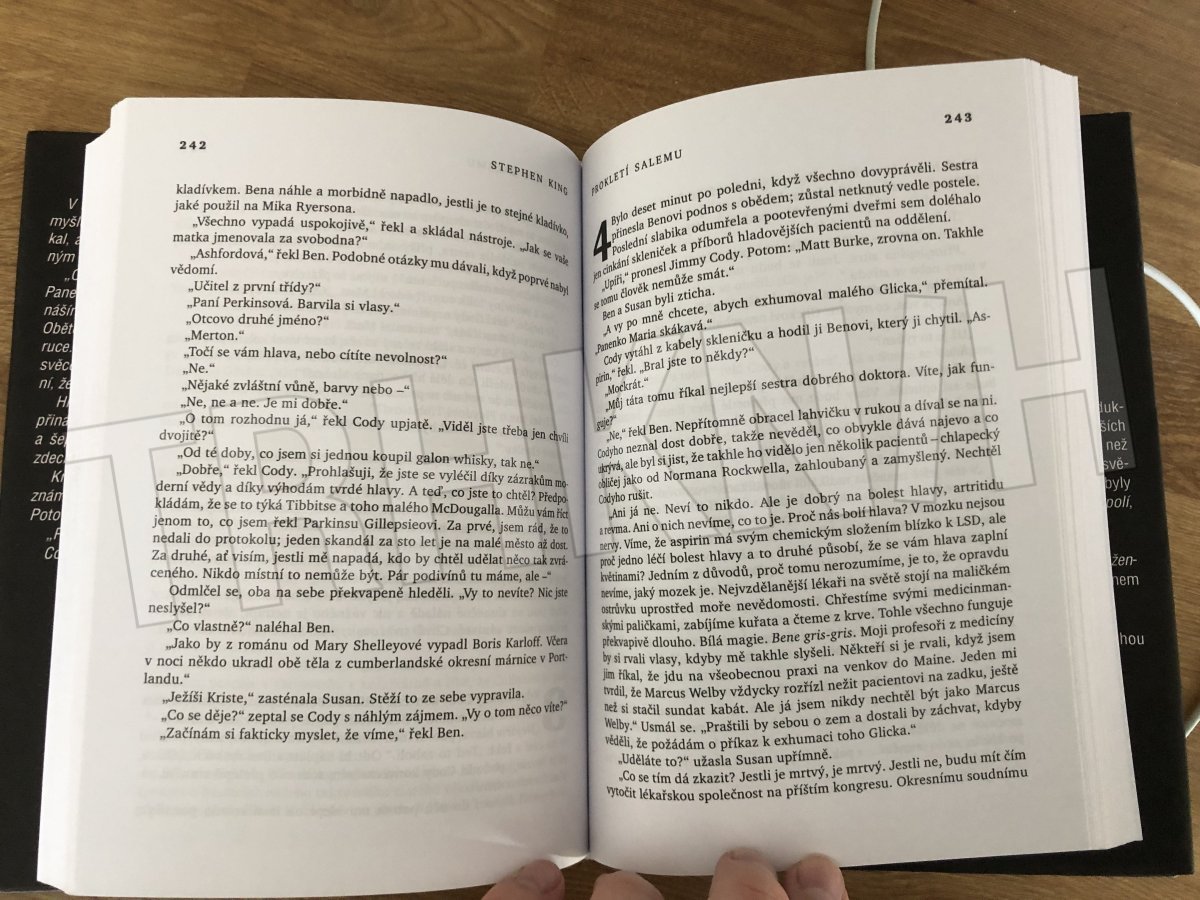 Jerusalem's Lot je poklidné městečko v Nové Anglii. Jenže pod jeho starosvětskou slupkou se skrývá zlo, které jen čeká na to, aby je někdo probudil. Každý něco skrývá, všichni tu mají na duši škraloup. Duchovní, otec Callahan, nezřízeně pije a v Bohu už nevěří, sedmnáctiletá Sandy McDougallová bije své roční dítě, když zlobí, Bonne Sawyerová je muži nevěrná prakticky s každým, koho potká. A k tomu všemu na město z kopce shlíží opuštěný a strašidelný Marstenův dům, který zničehonic začal někdo obývat. A nikdo netuší, že právě odtud v podobě upíra, pana Barlowa, a jeho pomocníka Strakera přichází apokalyptická zkáza. Nejméně ze všech pak průměrný spisovatel thrillerů Ben Mears, jenž se do Salemu po letech vrací, aby tu našel ztracený klid...