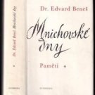 Paměti druhého presidenta Československé republiky, věnované speciálně mnichovským dnům. Autor je začal psát ještě za války na základě vlastních vzpomínek a tehdy dostupného dokumentárního materiálu, a to jako náčrt kmnohemrozsáhlejšímu dílu, které se mu již nepodařilo realizovat. Paměti takto doplňují řadu memoárových prací, které byly za uplynulých třicet let ve světě o tomto tématu vydány, včetně pamětí hlavních aktérů mnichovského dramatu,ajejich přínosem je až dosud chybějící závažný pohled z druhé strany, v mnohém korigující různá tvrzení hlavních účastníků mnichovského jednání o ČSR.