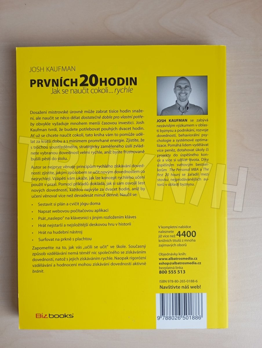 Dosažení mistrovské úrovně může zabrat tisíce hodin snažení, ale naučit se něco dělat dostatečně dobře pro vlastní potřeby obvykle vyžaduje mnohem menší časovou investici. Josh Kaufman tvrdí, že budete potřebovat pouhých dvacet hodin. Ať už se chcete naučit cokoli, tato kniha vám to pomůže udělat za kratší dobu a s minimem promrhané energie. Zjistíte, že s trochou soustředěného, strategicky zaměřeného úsilí zvládnete vybranou dovednost velmi rychle, aniž byste frustrovaně bušili pěstí do stolu. Deset jednoduchých principů vám zaručí, že budete při získávání nové dovednosti postupovat nejúčinnějším a nejúspornějším způsobem.