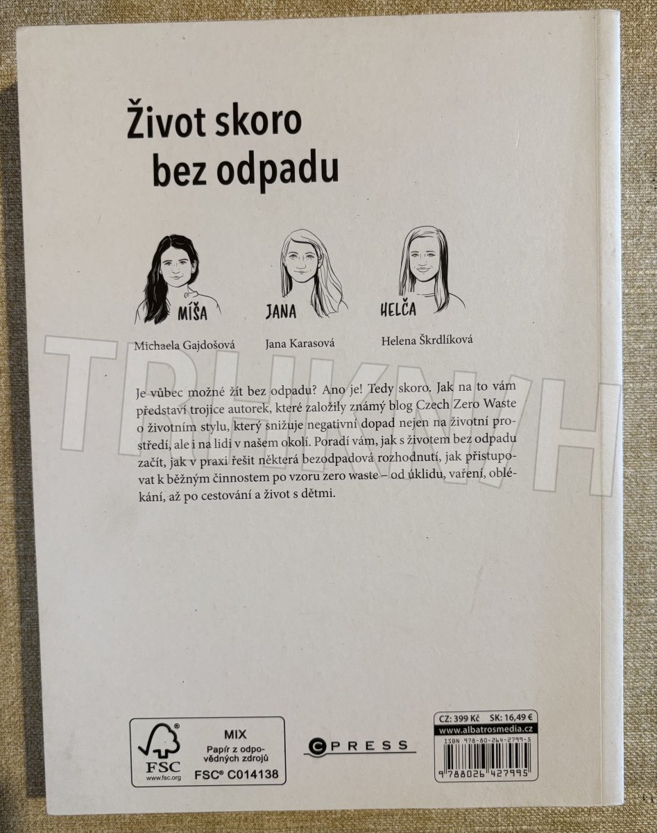 Je vůbec možné žít bez odpadu? Ano je! Tedy skoro. Jak na to vám představí trojice autorek, které založily známý blog Czech Zero Waste o životním stylu, který snižuje negativní dopad nejen na životní prostředí, ale i na lidi v našem okolí. Poradí vám, jak s životem bez odpadu začít, jak v praxi řešit některá bezodpadová rozhodnutí, jak přistupovat k běžným činnostem po vzoru zero waste – od úklidu, vaření, oblékání, až po cestování a život s dětmi.