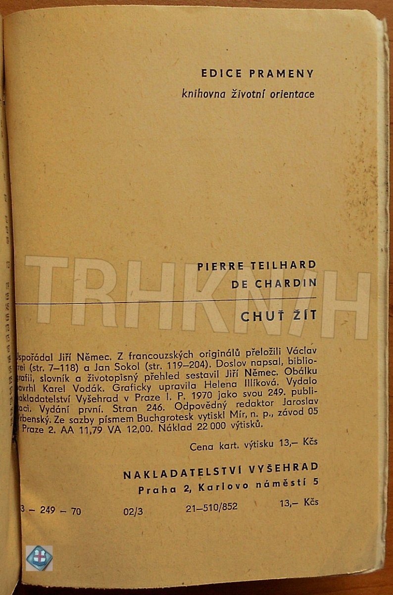 Pierre Teilhard de Chardin ; [Uspoř. Jiří Němec ; Z franc. originálů přel. Václav Frei a Jan Sokol ; Doslov naps., bibliogr., slovník a životopisný přehl. sest. J. Němec]