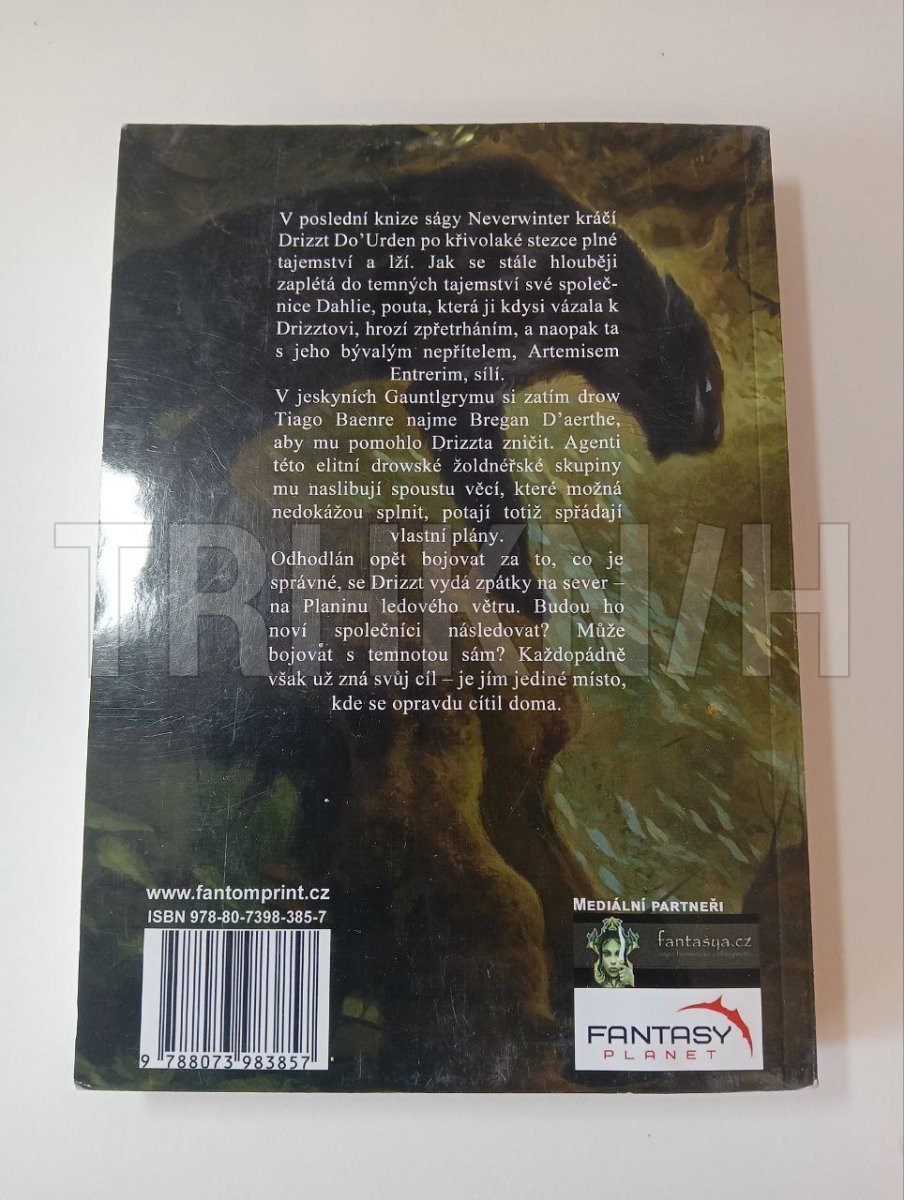 V poslední knize ságy Neverwinter, která se vyšplhala na čtvrté místo žebříčku bestsellerů New York Times, kráčí Drizzt Do’Urden po křivolaké stezce plné tajemství a lží. Jak se stále hlouběji zaplétá do temných tajemství své společnice Dahlie, pouta, která ji kdysi vázala k Drizztovi, hrozí zpřetrháním, a naopak ta s jeho bývalým nepřítelem, Artemisem Entrerim, sílí. V jeskyních Gauntlgrymu si zatím drow Tiago Baenre najme Bregan D’aerthe, aby mu pomohlo Drizzta zničit. Agenti této elitní drowské žoldnéřské skupiny mu naslibují spoustu věcí, které možná nedokážou splnit, potají totiž spřádají vlastní plány. Odhodlán opět bojovat za to, co je správné, se Drizzt vydá zpátky na sever – na Planinu ledového větru. Budou ho jeho noví společníci následovat? Může bojovat s temnotou sám? Každopádně však už zná svůj cíl – je jím jediné místo, kde se opravdu cítil doma.