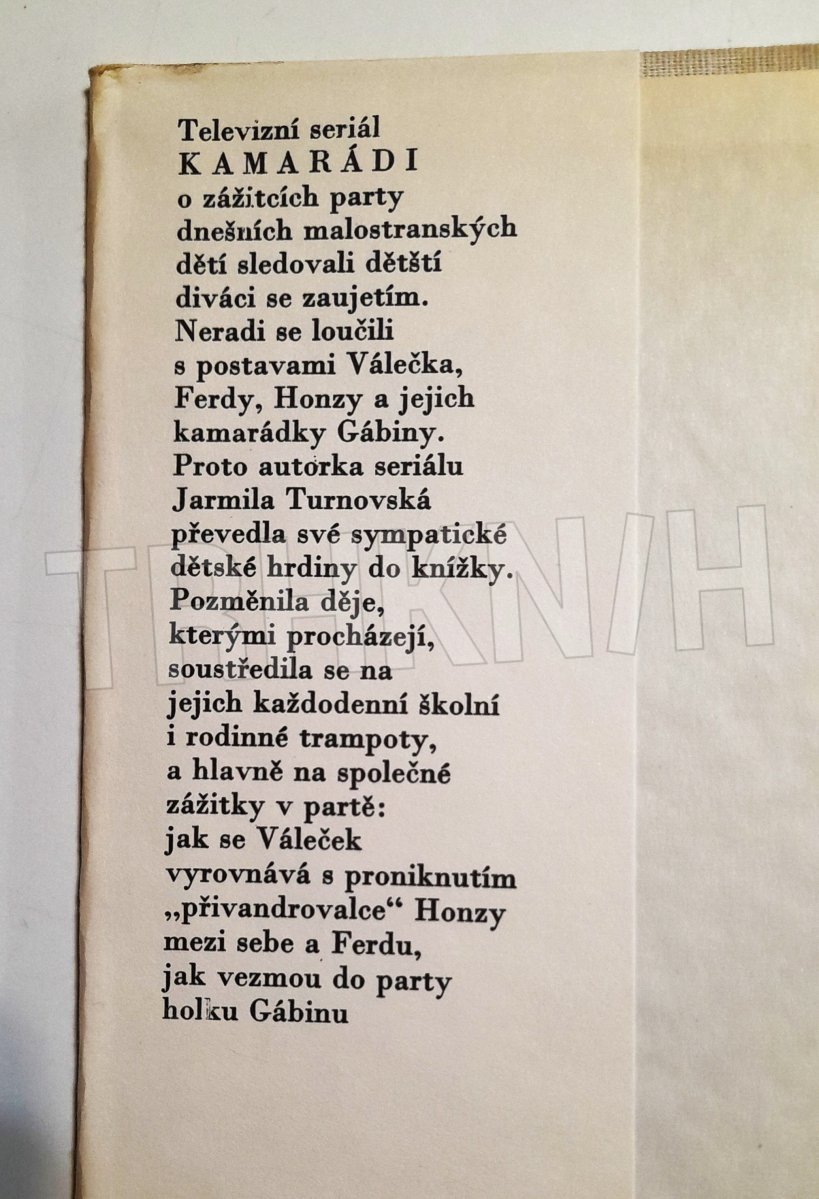 televizní seriál Kamarádi zná mnoho z nás, Váleček, Ferda, Honza a Gábina, jejich každodenní školní i rodinné trampoty, a společné zážitky v knižní podobě, ilustrace Stanislav Duda, plátěná vazba, přebal chybí, běžný stav, 136 stran