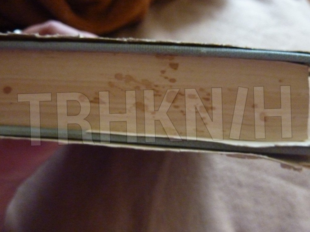 Přebal je na hřbetu odřený, dole je asi 2 cm natržený, na přední straně desek je malinký flíček.