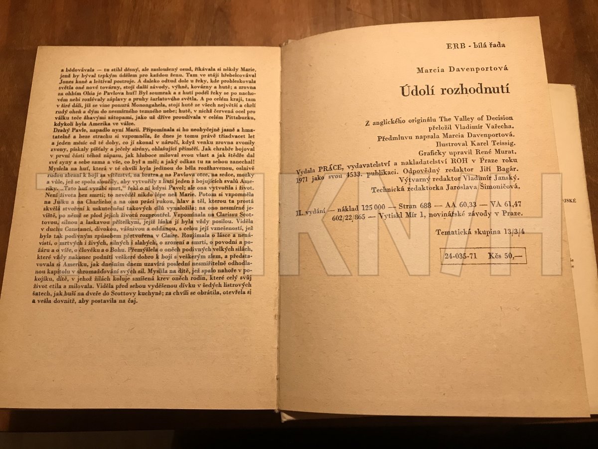 [Autorka:] Marcia Davenportová ; Z angl. orig. The Valley of Decision přel. Vladimír Vařecha