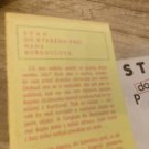 Přebal je zašlý, na hřbetu zahnědlý, je tam flíček a dvě malinká protržení. Z vnitřní strany přebalu jsou na okraji malé flíčky.