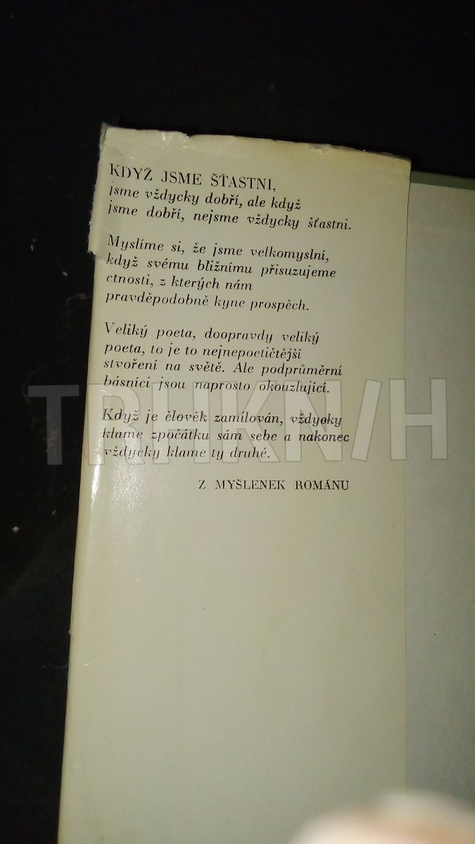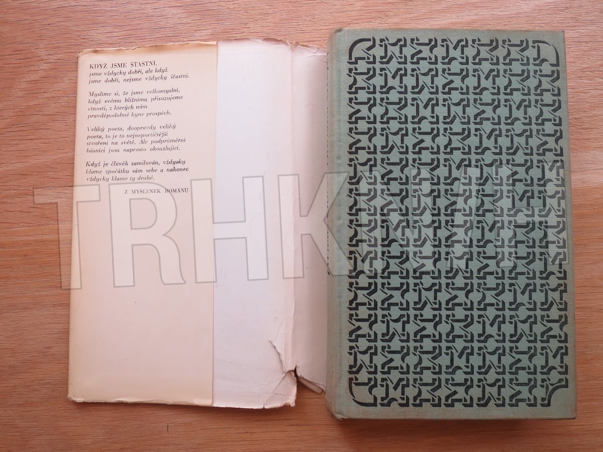 Starší kniha, ale vcelku v pořádku, jen poškozený papírový přebal - nahoře trochu zatečený, po hranách a na hřbetě odřený a vepředu izolepou slepená natrženina. Uvnitř zažloutlá, tu a tam podtrženo tužkou. Desky pod přebalem i vazba v pořádku.