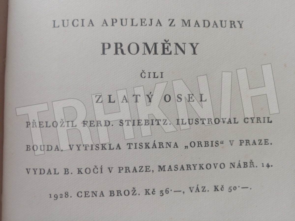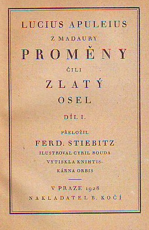 Lucius Apuleius, překlad Ferdinand Stiebitz, ilustrace Cyril Bouda