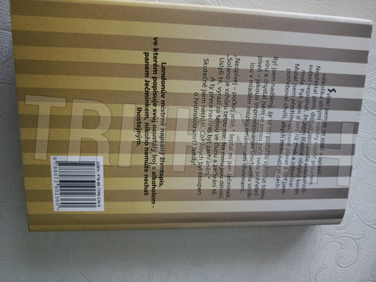 Život bouřliváka Jacka Londona byl velmi bohatý. Živil se jako kamelot, ústřicový pirát, člen pobřežní hlídky, námořník, lovec tuleňů, zlatokop i spisovatel. Při tom procestoval nemalý kus světa. Na všech cestách se neustále setkával s panem Ječmínkem… V mnoha směrech autobiografická kniha je známá i pod názvem Démon alkohol.