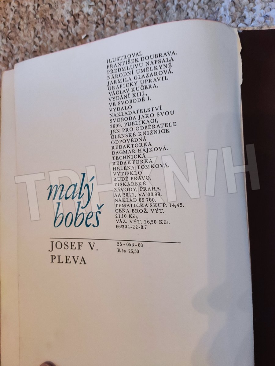 1968 Stav: Dobrý, natrhnutá obálka, chybí půlka obálky na hřbetu. Vazba: Pevná s obálkou