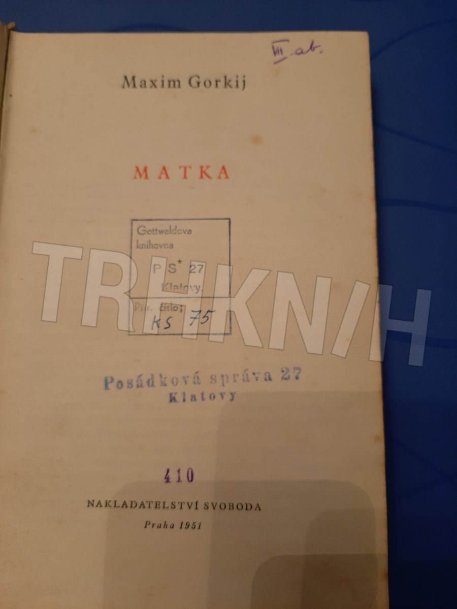 Matka Autor: Gor'kij, Maksim Vydání: 9 Místo vydání: Praha Počet stran: 271 s. Rok vydání: 1952 Vazba: vázaná s obálkou Stav: dobrý, zašpiněná obálka Nakladatel: Svoboda Kategorie: Beletrie Edice, série: kniha Vytvořeno: 2021-12-06 11:09:47 Naposledy upr