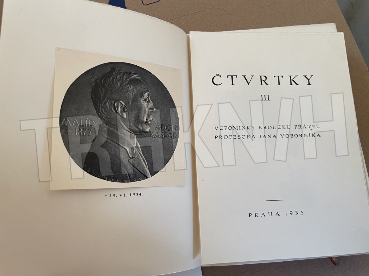 Vzpomínky kroužku přátel profesora Jana Voborníka, dobová plátěná vazba, na předsádce vlepeno ex libris František Purš, výtisk číslo 168, na patitulu a před titulem vlepeny dva obrázky, 240 stran