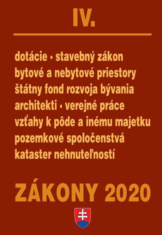 Zborník obsahuje úplné znenie zákonov, vyhlášok a opatrení po novelách platných k 1. 1. 2020. V tomto roku je doplnený o Zákon č. 223/2019 Z. z. o sčítaní obyvateľov, domov a bytov v roku 2021 a o zmene a doplnení niektorých zákonov, Opatrenie č. 435/2019 Z. z., ktorým sa ustanovujú podrobnosti o systéme identifikácie elektronickej identity obyvateľa, Vyhlášku č. 181/2019 Z. z. o výške dotácie na obstaranie nájomného bytu a Vyhlášku č. 284/2013 Z. z. o podrobnostiach o výške poskytovanie podpory zo Štátneho fondu rozvoja bývania...