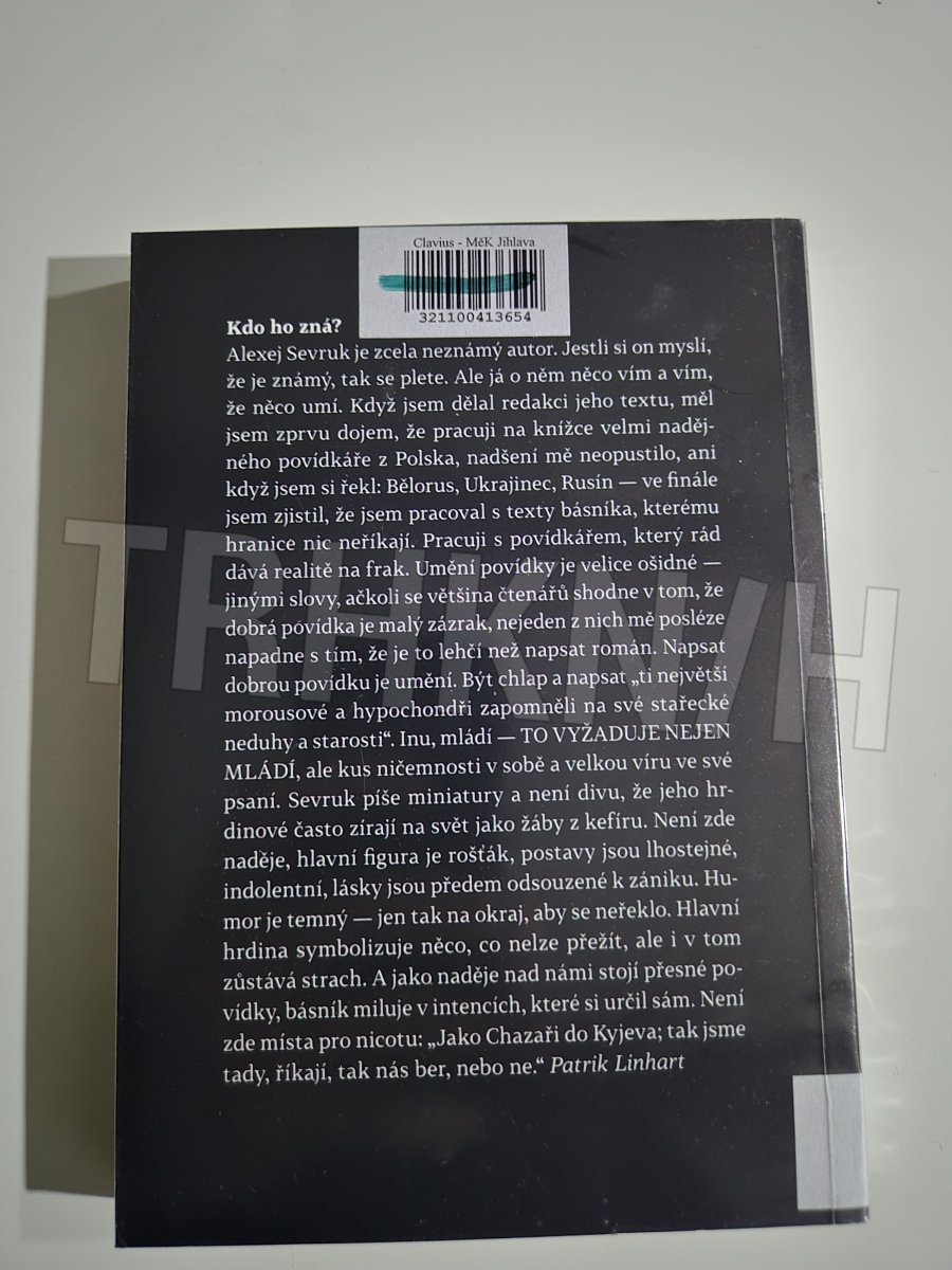 Povídkový soubor. Sevruk, český básník, překladatel a prozaik s ukrajinskými kořeny, píše miniatury a jeho hrdinové často zírají na svět jako žáby z kefíru. Není zde naděje, hlavní figura je rošťák, postavy jsou lhostejné, indolentní, lásky jsou předem odsouzené k zániku. Humor je temný — jen tak na okraj, aby se neřeklo. Hlavní hrdina symbolizuje něco, co nelze přežít, ale i v tom zůstává strach. A jako naděje nad vším stojí přesné povídky. Básník miluje v intencích, které si určil sám. Není zde místa pro nicotu: „Jako Chazaři do Kyjeva, tak jsme tady, říkají, tak nás ber, nebo ne.“